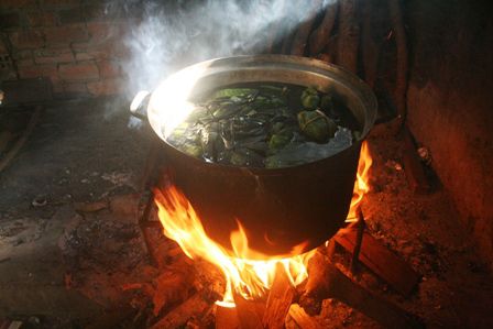 Hương xuân lan tỏa từ những bông hoa huệ, vạn thọ, những đóa hoa trường sanh… Nó là hương thơm của quê hương, trong sáng và giản dị. Mỗi ngôi nhà trang trí một góc nhỏ với những bông hoa này để cúng trên bàn thờ. Trên từng cánh hoa, chứa đựng sự quan tâm, chăm sóc của con cháu đã dành cho chúng từ mùa đông, từ khi chúng chỉ là hạt giống, mầm non. Nơi những làng quê xa nhà máy xay lúa, rộn ràng trong những ngày cuối năm từ đầu làng đến cuối xóm, tiếng cối xay lúa, tiếng chày giã gạo vang lên… Tiếng xuân reo vui từ những bếp lửa rực hồng, từ thùng nấu bánh tét. Tiếng cười, tiếng nói huyên thuyên của mọi người quây quần bên bếp lửa, vừa canh chừng nồi bánh, vừa làm ấm cái lạnh cuối năm. Tất cả đều như đỏ lửa bừng cháy qua lớp giấy đỏ. Mỗi vật dụng giản dị đều mang trong mình hơi thở của mùa xuân. Người, cây cỏ, hoa lá, động vật, vật nuôi… tất cả hòa mình vào không khí xuân, tất cả được ăn Tết.