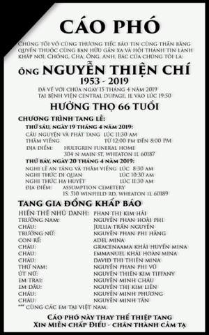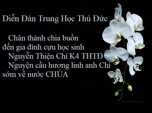 Gia đình chúng tôi xin chân thành cảm tạ Thầy Cô, các bạn Diễn Đàn THTĐ và cô Đặng Hồng Cúc đã email chia buồn và gởi vòng hoa đưa tiển nhà tôi : NGUYỄN THIỆN CHÍ về an nghĩ nơi nước Chúa