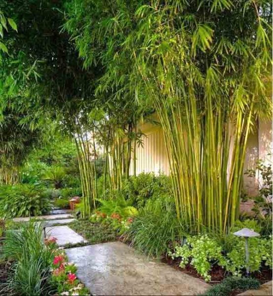 Trúc là một trong bốn loại cây tứ quý nổi tiếng của Việt Nam gồm “tùng, cúc, trúc, mai”. Cây trúc còn được gọi là cương trúc (tên khoa học: Phyllostachys) thuộc tông Tre, họ Poaceae (họ Hòa thảo), là một loại cây gỗ nhỏ thẳng đứng và phân nhánh tại các đốt, ruột rỗng, có lớp thịt mỏng bao quanh. Kích thước tùy loại cây và điều kiện môi trường, có thể đạt chiều cao từ 3 đến 10 m và đường kính thân từ 2 đến 5 cm. Lá giống như lá tre, nhưng ngắn và thon hơn. Viền lá có nhiều gai nhỏ nhám khi chạm vào. Hoa trúc không phổ biến và hiếm gặp, thường có màu trắng và vàng mọc từ những cành ngoài cùng của cây. Rễ chùm của trúc rất dẻo dai và bám dính vào đất rất tốt. Trúc có nhiều rễ và mao hút, giúp cây chịu hạn tốt và có khả năng sống ở nhiều môi trường khác nhau. Trúc thường sinh sản bằng cách lan rễ từ các rễ chùm. Thuật ngữ trúc cảnh dùng để chỉ những loại trúc được trồng và sử dụng làm cây cảnh trong nội thất và ngoại thất. Trúc cảnh được ưa chuộng vì vẻ đẹp tự nhiên và hình dạng độc đáo của thân cây, cũng như khả năng tạo ra một không gian xanh mát, thoáng đãng, giảm nhiệt độ xung quanh, hấp thụ âm thanh, giảm tiếng ồn. Ngoài ra, trúc cảnh còn được sử dụng để tạo các màn che, hàng rào hoặc tạo nền cho các vườn hoa. Hiện nay trúc cảnh là một trong những loại cây cảnh phổ biến nhất, mang đến một cái nhìn tươi mới và gần gũi với thiên nhiên trong không gian sống. Có nhiều loại trúc được trồng và sử dụng làm trúc cảnh như: – Trúc đen (Phyllostachys nigra) thân màu đen và lá màu xanh đen đậm, được ưa chuộng vì màu sắc đặc biệt của nó. Trúc là loài cây có sức sống mạnh mẽ, dễ trồng, sinh trưởng nhanh, thích nghi với nhiều loại đất và điều kiện khí hậu. Với những mảng xanh của lá trúc, nó tạo ra không gian tự nhiên, tăng sự thoáng đãng và mát mẻ. Trúc mang đến một cảm giác bình dị và thanh bình trong thiết kế nội thất và ngoại thất. – Trúc cảnh vườn zen đã trở thành một xu hướng phổ biến trong thiết kế kiến trúc Việt Nam vào những năm gần đây. Vườn zen thể hiện cảnh quan trừu tượng và ý nghĩa tâm linh sâu sắc. Cây trúc trong vườn zen mang đến nét đẹp đặc biệt với sự cao và thẳng của thân cây, hình dạng uốn lượn, màu sắc xanh tươi, sự tối giản và tương phản nhưng hài hòa với môi trường xung quanh. Mặc dù lấy cảm hứng từ kiến trúc vườn Nhật, vườn zen không nhất thiết phải giống nguyên bản. Nó có thể biến tấu và thích nghi với kiến trúc nhà và sở thích của chủ nhân, quan trọng là tạo ra một không gian tâm linh cân bằng, tĩnh tại… – Trúc cảnh sân vườn có thể được trang trí theo nhiều phong cách và sử dụng nhiều vật liệu khác nhau để tạo ra không gian đẹp mắt. Sau đây là một số lựa chọn phổ biến. Sử dụng trúc nhỏ trồng dọc theo bờ tường. Dưới đó, có thể bố trí cây tầng thấp hoặc sỏi trắng, nâu để tạo điểm nhấn. Thiết kế này giúp che giấu vật liệu thô cứng của tường, tạo không gian xanh mát và hiện đại. Tạo ra những cụm trúc mô phỏng sự sinh trưởng tự nhiên. Trúc được kết hợp với cây hoa và cây chịu bóng để tạo nên một tổng thể hài hòa. Thiết kế này mang đến cảm giác thân thuộc, yên bình. Bố trí trúc dọc theo lối đi, phù hợp cho các không gian rộng như biệt thự, khu vườn chùa, công viên, khu nghỉ dưỡng, khu vui chơi. Thiết kế nầy kết hợp với cây tầng thấp và đá tảng, thu hút ánh nhìn.
