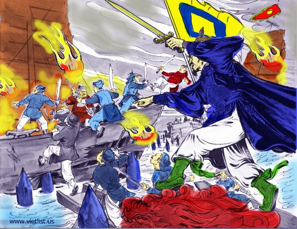 Ngô Quyền giết giặc thây đầy dòng sông.