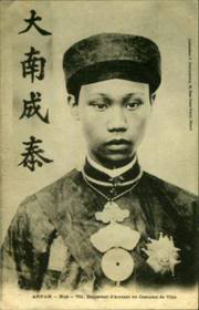 Vua Duy Tân ( 19 tháng 9, 1900 – 26 tháng 12, 1945) là vị Hoàng đế thứ 11 của nhà Nguyễn (ở ngôi từ 1907 tới 1916), sau vua Thành Thái. 1916 ông bị đem an trí trên đảo Réunion ở Ấn Độ Dương. Ngày 24 tháng 4 năm 1987, thi hài ông được đưa từ đảo Réunion về Việt Nam, rồi đưa về an táng tại Lăng Dục Đức, Huế cạnh lăng mộ vua cha Thành Thái.